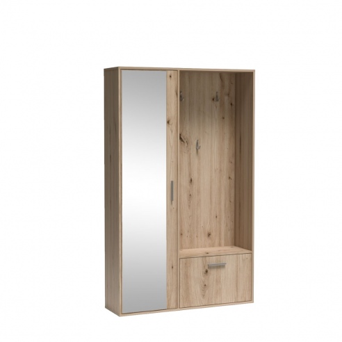 ![]() Przedpokój to pierwsze miejsce, które witając zarówno mieszkańców jak i gości, prezentuje charakter Twojego mieszkania. Jeśli marzysz o stworzeniu przytulnej i funkcjonalnej przestrzeni, garderoby do przedpokoju z oferty Minio mogą spełnić Twoje oczekiwania. Nasza garderoba BIS będzie dla Ciebie idealnym rozwiązaniem. Dostępna jest w kilku wariantach kolorystycznych, dzięki czemu możesz wybrać kolor idealnie pasujący do wystroju Twojego wnętrza. W skład zestawu wchodzą: dwie pojemne półki oraz solidny metalowy drążek na ubrania, ukryte za dużymi drzwiami z wysokim lustrem, otwierana szafka na buty oraz trzy haczyki na kurtki. Dzięki swoim rozmiarom garderoba idealnie sprawdzi się zarówno w mniejszych, jak i większych pomieszczeniach. Ogromną zaletą garderoby jest jej wysoka jakość wykonania. Każdy element został stworzony z dbałością o najmniejsze detale. Dzięki temu mebel jest perfekcyjny i niepowtarzalny. Odporna na zabrudzenia, zarysowania i uszkodzenia płyta meblowa sprawia, że garderoba BIS jest również idealna dla właścicieli zwierząt czy rodzin z dziećmi. Ten model będzie modny dziś, jutro i za dziesięć lat. Dużą zaletą tej garderoby jest jego niewielki rozmiar. Mimo to zestaw jest bardzo pojemny i z pewnością znajdzie się w nim miejsce na wszystkie ważne rzeczy. |